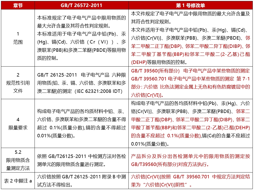 其中,中國RoHS配套的標準GB/T 26572-2011《電子電氣產(chǎn)品中限用物質(zhì)的限量要求》第1號修改單將鄰苯二甲酸二正丁酯(DBP)、鄰苯二甲酸二異丁酯(DIBP)、鄰苯二甲酸丁基芐酯(BBP)和鄰苯二甲酸二(2-乙基)己酯(DEHP)四種鄰苯二甲酸酯納入標準管控,GB/T 26572-2011限用物質(zhì)增至十項。該要求將于2026年1月1日正式實(shí)施。