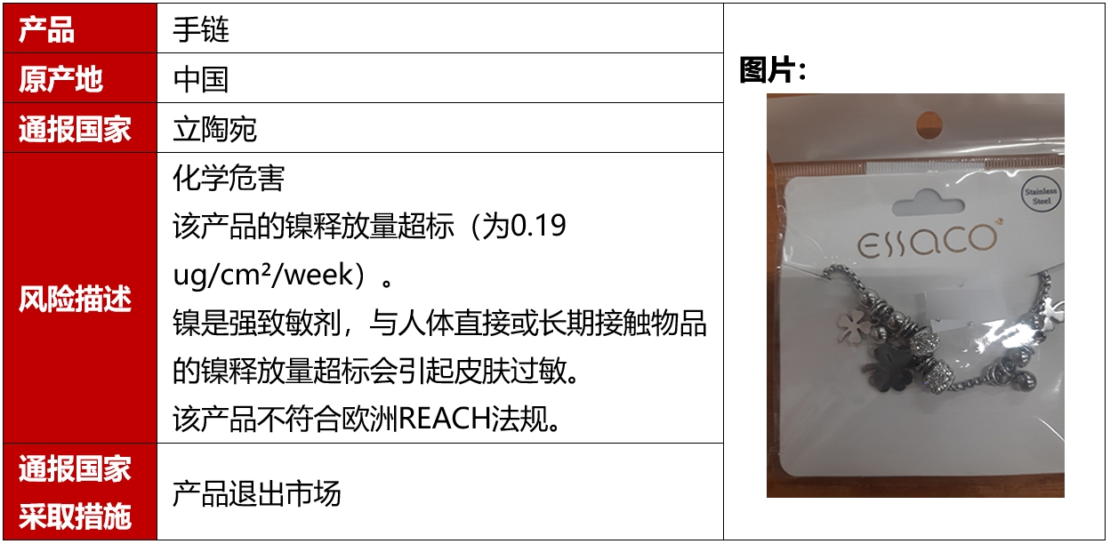 2024年6月,歐盟、美國、加拿大和澳洲共發(fā)生19例飾品召回案例,這些召回發(fā)生在歐盟,且皆因存在化學(xué)危害而被召回。