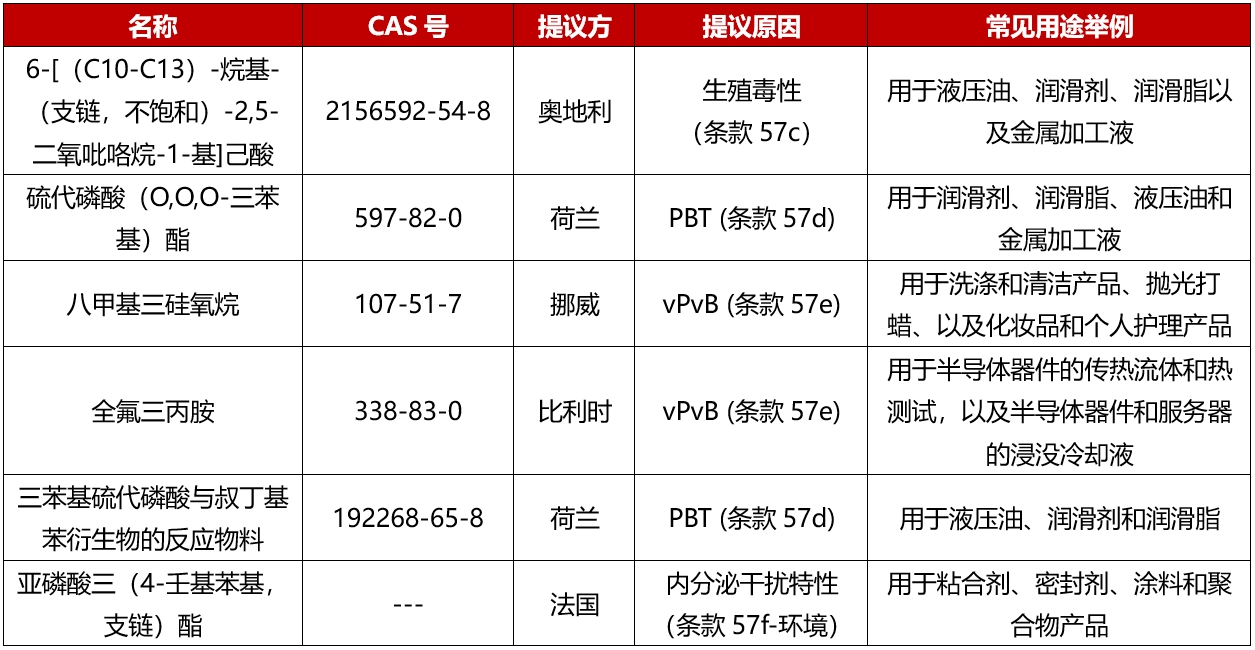 2024年8月30日,歐洲化學(xué)品管理局(ECHA)公布對6種潛在的SVHC候選物質(zhì)展開(kāi)公眾咨詢(xún),此次公眾咨詢(xún)期持續到2024年10月14日,利益相關(guān)方可在此期間向ECHA提交反饋意見(jiàn)。ECHA將會(huì )對公眾提交的反饋意見(jiàn)進(jìn)行評議,最終確定正式納入第32批SVHC候選清單的物質(zhì)。