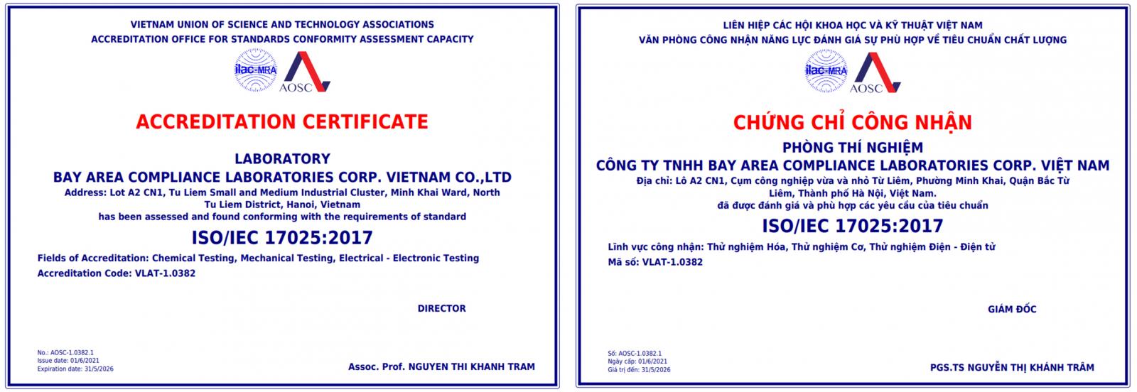 BACL越南分公司成立于2016年,坐落于越南首都河內市和第一大城市胡志明市,現擁有員工100+人,占地面積3000m2。BACL越南河內實(shí)驗室是倍科集團在東南亞地區繼臺灣(汐止/林口)、韓國B(niǎo)WS實(shí)驗室布局之后的又一個(gè)重要站點(diǎn)。BACL越南河內實(shí)驗室嚴格按照ISO/IEC 17025質(zhì)量管理體系建立,早在2019年就獲得了越南AOSC認可機構的認可。
