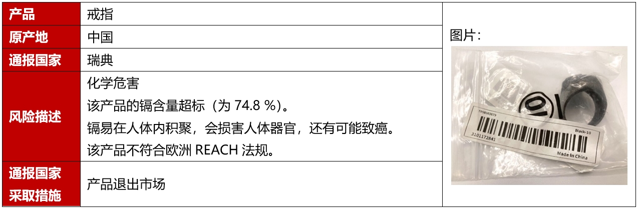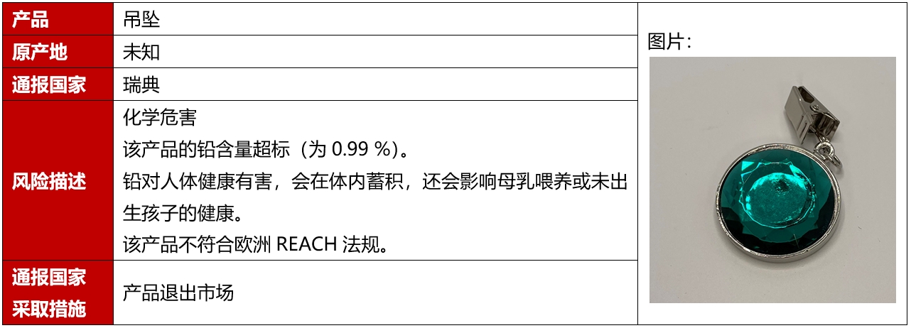 2024年10月,歐盟、美國、加拿大和澳洲共發(fā)生10例飾品召回案例,這些召回發(fā)生在歐盟,且都是因為存在化學(xué)危害而被召回的。